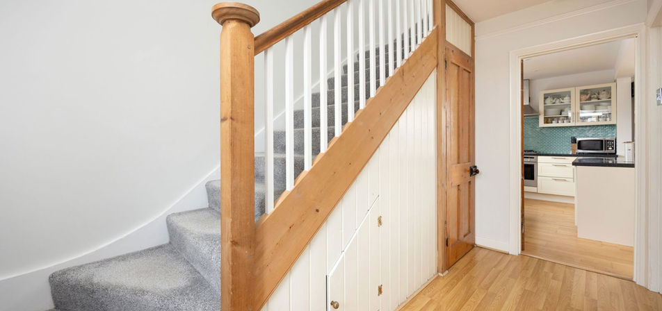 On the first floor, the accommodation comprises of three well-proportioned bedrooms, two of which are doubles with feature fireplaces and plenty of natural light that often shines in through the large windows. The third bedroom has been thoughtfully enhanced with quality bespoke wooden storage, cleverly designed to maximise usable space while maintaining a stylish and practical finish.